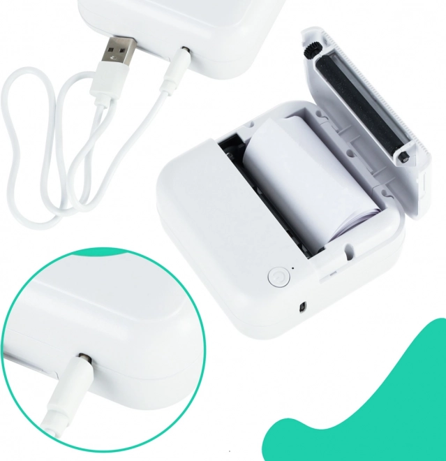 - Skład zestawu: Mini drukarka termiczna, rolka papieru termicznego, kabel USB.