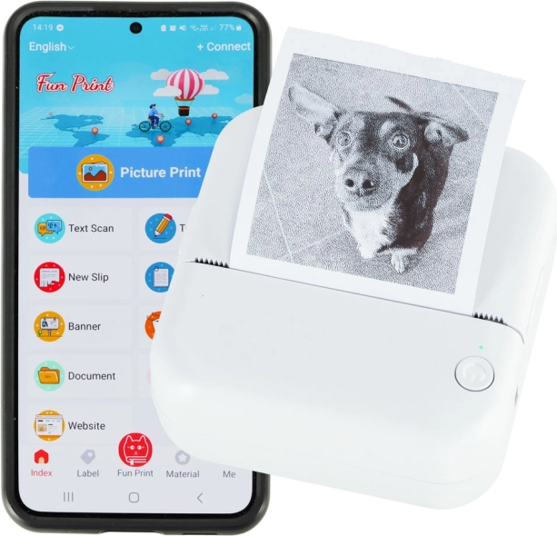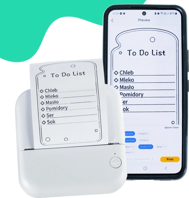 Mobilna mini drukarka termiczna pozwala na łatwe i szybkie drukowanie zdjęć, notatek lub etykiet gdziekolwiek i kiedykolwiek! Jest kompatybilna ze smartfonami i obsługuje druk bezprzewodowy.