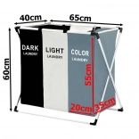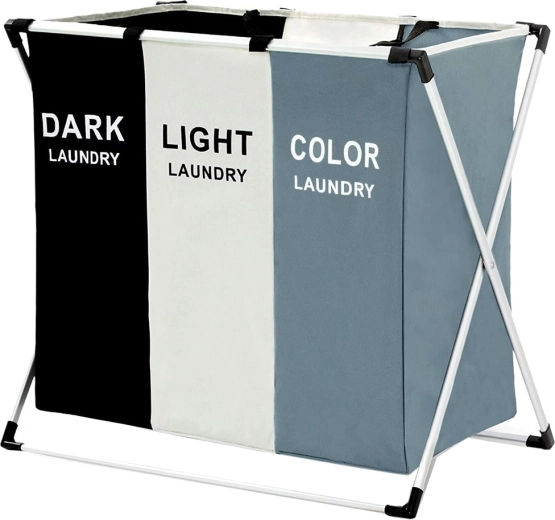 Ułatw sobie codzienne pranie dzięki koszowi na pranie z trzema przegródkami, który umożliwia oddzielenie prania według kolorów. Jest wykonany z wysokiej jakości materiałów i łączy praktyczne funkcje z eleganckim designem. Ten kosz na pranie łatwo wpasuje się w każde wnętrze.