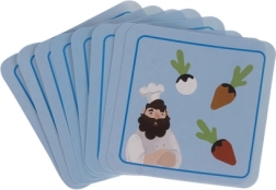 - 80 drewnianych kuleczek, 24 filcowe plony, 16 kart memory, 8 koszyczków, 2 drewniane pałeczki, drewniana łyżeczka, drewniany farmer