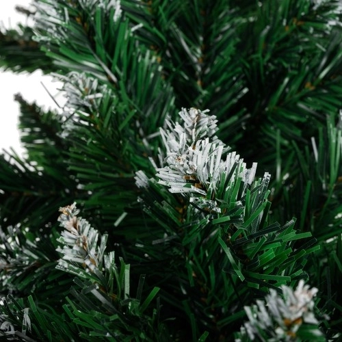 Zielone igliwie PVC z białymi końcówkami wiernie imituje ośnieżone gałązki i tworzy elegancki zimowy klimat bez osypywania.