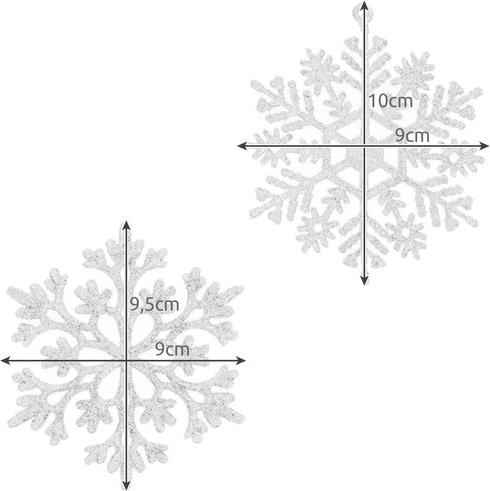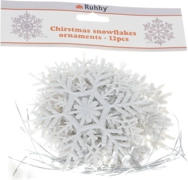 SPECYFIKACJA - kolor: biały z brokatem; materiał: plastik; liczba elementów: 12; wymiary wzoru 1: 10 x 9 cm; wymiary wzoru 2: 9,5 x 9 cm; waga: 48 g; waga zestawu: 52 g.