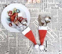 Czapeczki na sztućce w klasycznym czerwono-białym połączeniu dodadzą nakryciu świątecznego uroku, a jednocześnie utrzymają sztućce elegancko razem.
