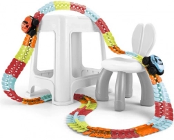 Ten elastyczny tor wyścigowy zapewni dzieciom godziny świetnej zabawy. Elementy można łatwo łączyć, obracać i przebudowywać, więc za każdym razem powstaje nowa, oryginalna trasa. Dzięki prowadzeniu w torze samochodzik pokonuje pętle, spirale, pochylenia oraz ostre zakręty.