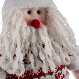 Przyjemny w dotyku poliester, puszysta broda i dziane wzory nadają wnętrzu ciepły, świąteczny klimat.