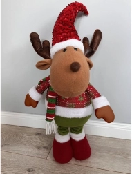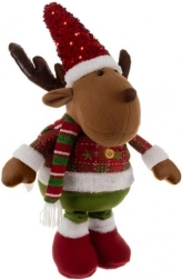 Renifer ma regulowaną wysokość dzięki teleskopowym nogom oraz modelowaną czapkę, co pozwala łatwo dopasować go do Twojej dekoracji. Dodatkowo jego wesoły design uzupełniają kolorowy płaszcz i szalik, potęgując świąteczną atmosferę.