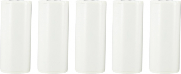 Praktyczne opakowanie z pięcioma rolkami papieru w kompaktowym rozmiarze, idealne do użycia w podróży.