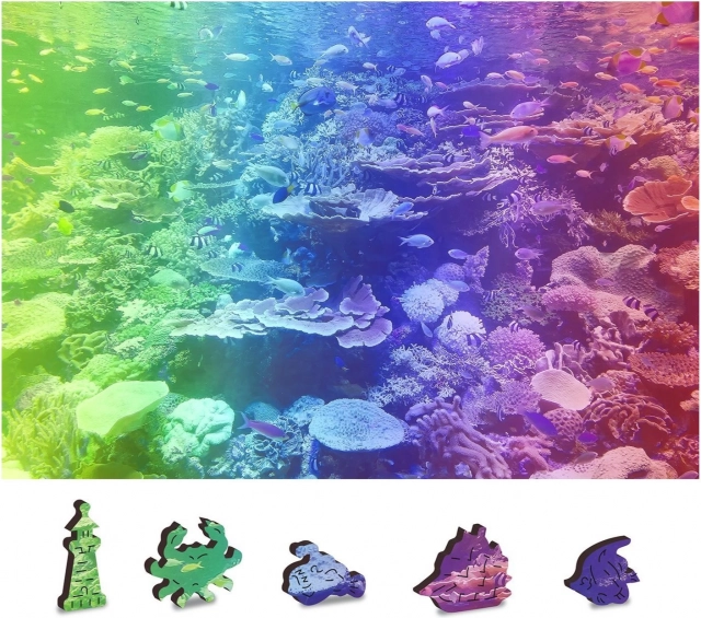 Odkryj radość układania z drewnianymi, dwustronnymi puzzlami Rafa koralowa 2w1. Dzięki specjalnie kształtowanym elementom, dwustronnemu wykonaniu oraz precyzyjnej obróbce laserowej oferują świetne wyzwanie nawet przy mniejszej liczbie elementów. Puzzle są eko-friendly – bez plastikowych opakowań i sprawdzą się także jako stylowy prezent.