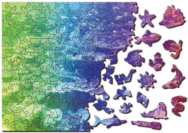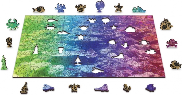 Drewniane puzzle Rafa koralowa 2w1 zapewniają wyjątkowe wrażenia z układania – z jednej strony układasz według kolorowego motywu, z drugiej według kształtów z powtarzającym się wzorem. Część elementów ma oryginalne kształty zwierząt, przedmiotów lub budowli, a dzięki laserowo podkreślonym detalom przypominają małe, samodzielne figurki.