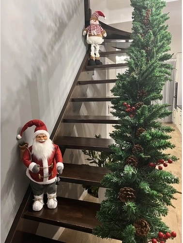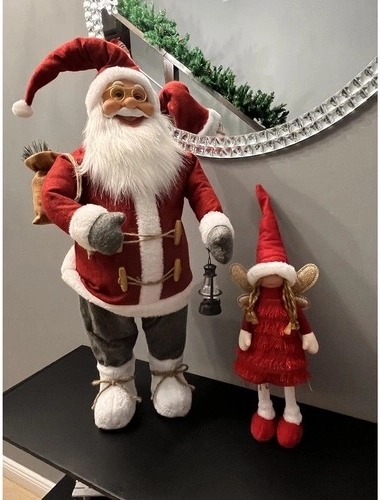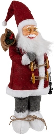 Dzięki wysokości 60 cm świetnie się wyróżnia, pozostając jednocześnie praktyczny do ustawienia nawet w mniejszych przestrzeniach. Szczegółowa twarz, puszysta broda i dodatki, takie jak lampion czy worek z gałązkami, podkreślają realistyczne i eleganckie wykonanie.