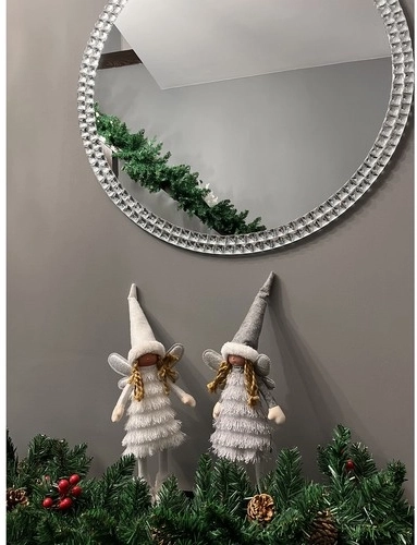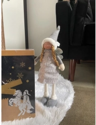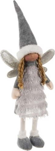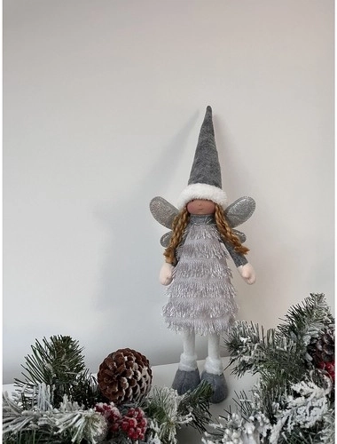 Ta elegancka świąteczna figurka wróżki/anioła w odcieniach szarości, bieli i srebra wnosi do domu przytulną zimową atmosferę. Lśniące skrzydła i miękkie tkaniny tworzą efekt magii i radości, typowy dla świątecznego czasu.