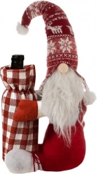 Uroczy świąteczny skrzat z tekstylnym pokrowcem na butelkę zamieni każdą butelkę wina w stylowy prezent i ozdobę stołu. Dzięki wysokiej jakości poliestrowemu wykonaniu pokrowiec jest trwały, wielokrotnego użytku i doskonale współgra z innymi świątecznymi dekoracjami. Wysoka, elastyczna czapka oraz charakterystyczne czerwono-białe wzory dodają serwowaniu i pakowaniu prezentów świątecznego klimatu.