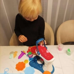 Ten kolorowy, kreatywny zestaw z wyciskarką w kształcie miksera pozwala dzieciom łatwo wyciskać, stemplować i modelować przeróżne smakołyki. Dźwignia miksera działa lekko, więc poradzą sobie z nią nawet młodsze dzieci. W zestawie znajduje się także wyciskarka do masy oraz miska z foremkami.