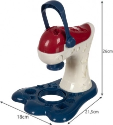 Duża maszyna w kształcie miksera z dźwignią wyciska i stempluje masę w zabawne kształty bez wysiłku – odpowiednia także dla młodszych dzieci.
