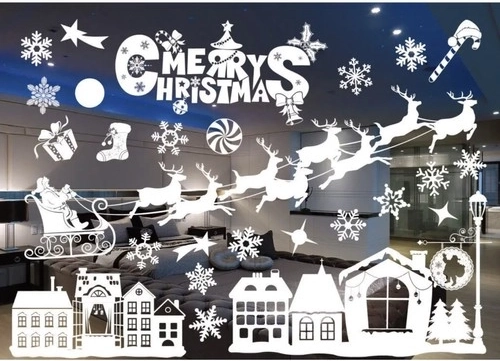 Motywy Mikołaja na saniach, reniferów i zimowych domków stworzą na oknach efektowną, bożonarodzeniową scenerię.