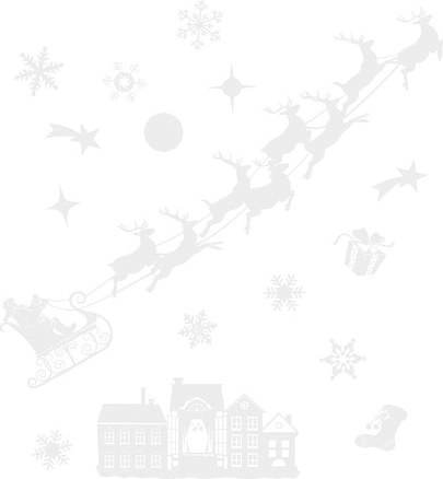 Odmień okna i szklane powierzchnie w urzekającą zimową scenerię. Naklejki z motywami Mikołaja na saniach, reniferów, domków i śnieżynek dzięki statycznemu przyleganiu aplikują się bez kleju – wystarczy czysta, odtłuszczona powierzchnia. Po zdjęciu nie pozostawiają śladów i można je przenosić lub używać ponownie.