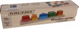 Drewniany sorter i układanka KRUZZEL to sprytna edukacyjna zabawka dla dzieci od 2 lat. Kolorowe elementy w podstawowych kształtach – koło, trójkąt, kwadrat, prostokąt i pięciokąt – nakłada się na kołki z przeszkodami, co motywuje dzieci do manipulacji i precyzyjnych ruchów palców. Zabawa wspiera rozpoznawanie kolorów i kształtów, cierpliwość oraz pamięć.