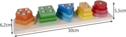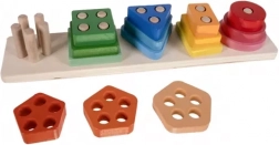 Pięć różnych kształtów w żywych kolorach pomaga dzieciom naturalnie przyswajać podstawowe pojęcia geometryczne i rozróżnianie barw.