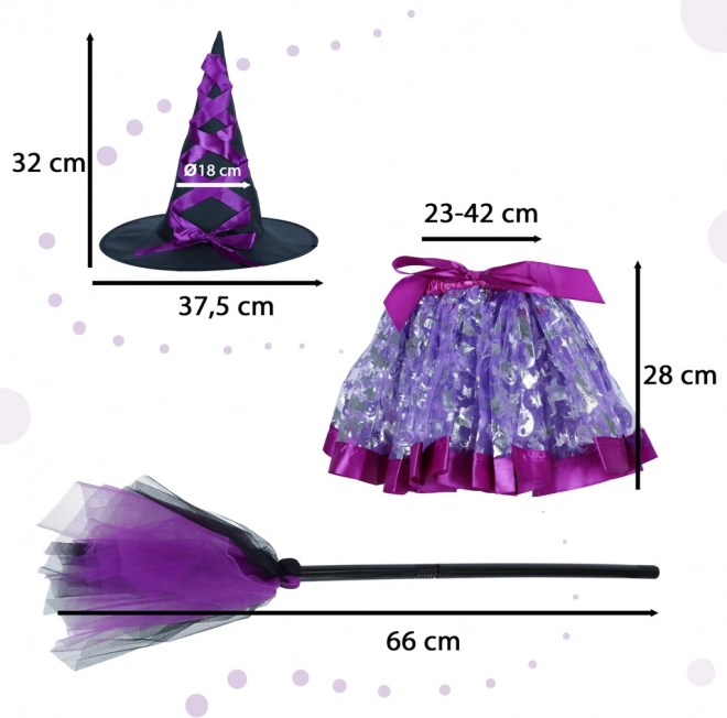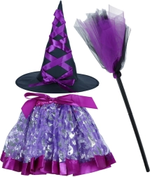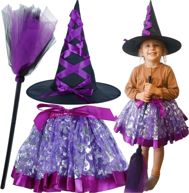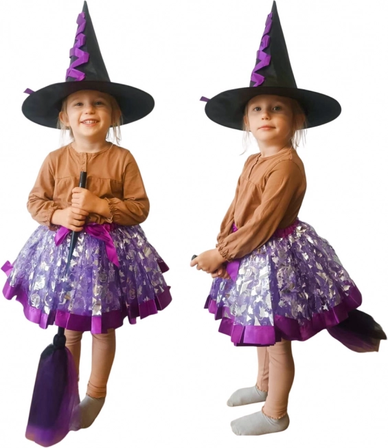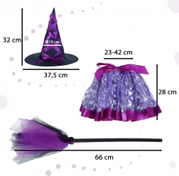 Ubranie Twojego dziecka w ten urokliwy zestaw stroju wiedźmy, zawierający ozdobny kapelusz, fioletową spódnicę z elastycznym pasem oraz wyjątkową miotłę, to świetny pomysł na szkolne bale, wydarzenia tematyczne lub po prostu codzienną zabawę w domu.