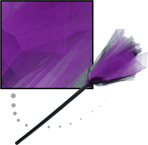 Dodaje zestawowi jeszcze więcej uroku. Miotła z czarną rączką i fioletowo‑czarnymi frędzlami to efektowny dodatek.