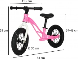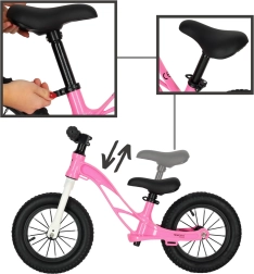 Intensywna różowa barwa i oryginalny design ramy przyciągają uwagę, więc ten rowerek biegowy jest nie tylko funkcjonalnym, ale także stylowym pierwszym rowerkiem Twojego dziecka.