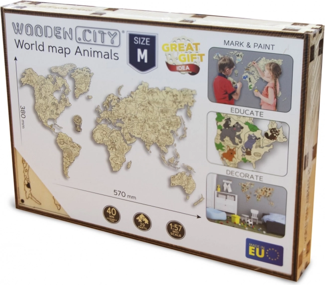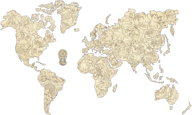 Odkrywaj świat w zabawny sposób. Drewniana mapa ze zwierzątkami w skali 1:57 mln jest precyzyjnie wycinana laserowo ze sklejki brzozowej, dzięki czemu wyróżnia się czystymi liniami i naturalnym rysunkiem drewna. Świetnie sprawdza się jako dekoracja i pomoc naukowa – dzieci w ciekawy sposób poszerzą wiedzę o kontynentach, oceanach i zwierzętach.