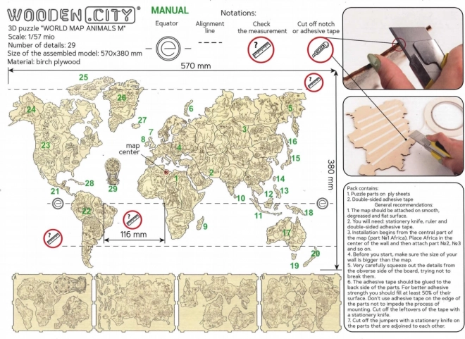 Montaż zajmuje chwilę – w zestawie znajduje się dwustronna taśma klejąca oraz ilustrowana instrukcja rozmieszczenia. Elementy można dodatkowo pokolorować według własnej fantazji, dzięki czemu każda mapa będzie wyjątkowa.