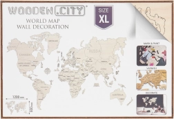 Mapa służy nie tylko jako elegancka dekoracja, ale także jako interaktywne przypomnienie Twoich podróży. Odwiedzone miejsca możesz pokolorować lub w drewno wbić szpilkę z chorągiewką. Dzięki łatwemu poziomowi trudności złożysz ją w około godzinę – idealny projekt na przyjemny wieczór w domu.