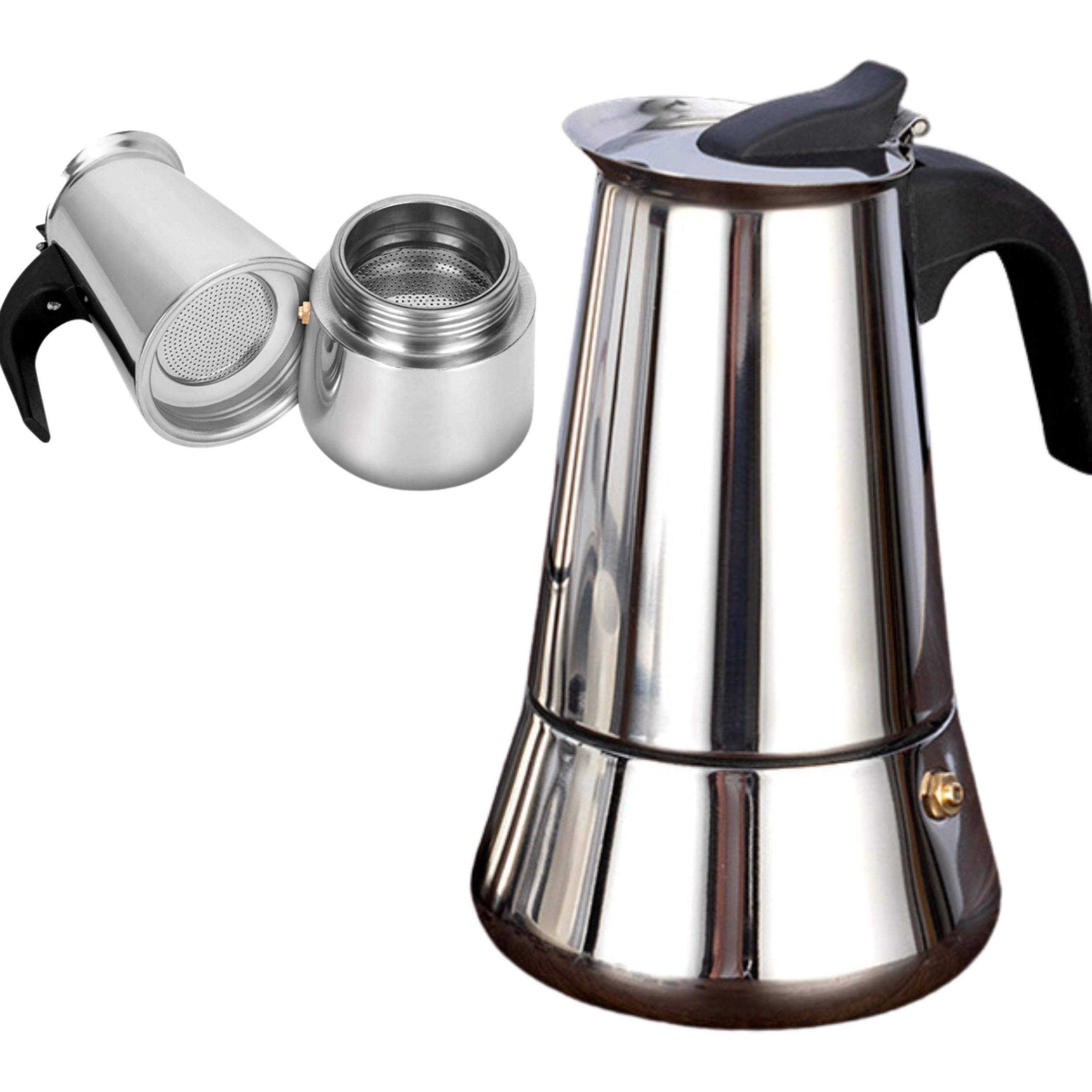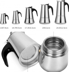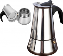 Pojemność do 12 filiżanek czyni z niej praktycznego pomocnika dla rodziny i gości. Odporny na ciepło uchwyt ułatwia nalewanie, a stal nierdzewna gwarantuje długą żywotność i odporność na zarysowania. Kawiarkę można używać na kuchenkach gazowych i elektrycznych, a po zaparzeniu łatwo ją rozebrać i wyczyścić.