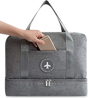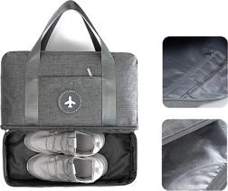 Lekka i praktyczna torba na siłownię i na weekend z oddzielną dolną przegrodą na obuwie. Oferuje wodoodporny poliester, solidne metalowe zamki oraz przednią kieszeń na zamek na telefon, portfel i klucze. Idealna do sportu, podróży i codziennego użytku.