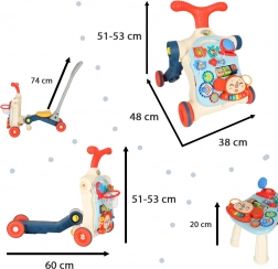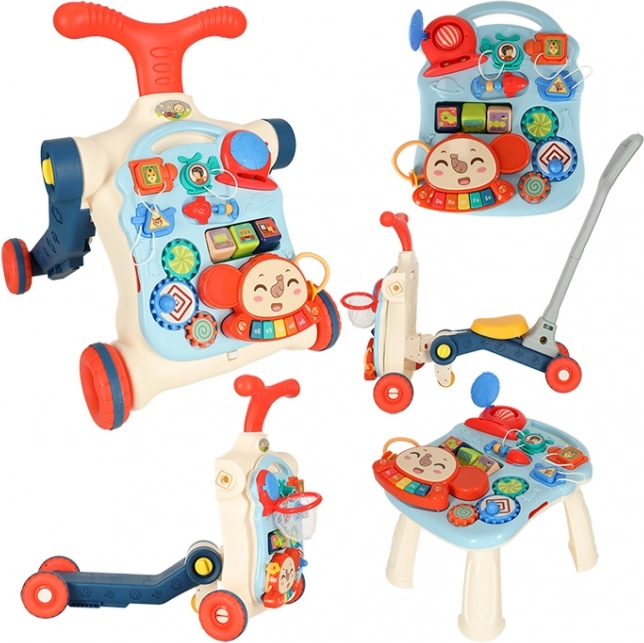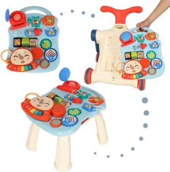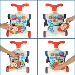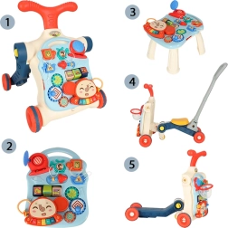 Wielofunkcyjny chodzik dziecięcy i interaktywny stół 5w1 oferuje pięć różnych modyfikacji w zależności od wieku dziecka: chodzik, hulajnoga, rowerek biegowy, interaktywny stolik i wisząca tablica. Ten produkt rozwija się wraz z twoim dzieckiem, bez potrzeby kupowania nowych zabawek.