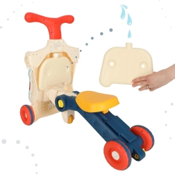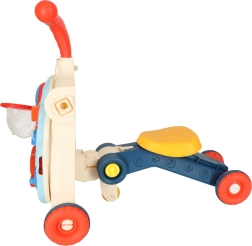 Produkt oferuje pięć modyfikacji: chodzik, hulajnoga, rowerek biegowy, interaktywny stolik i wisząca tablica.