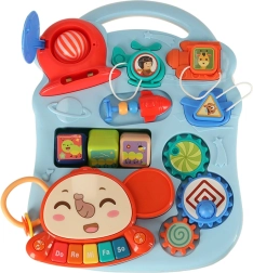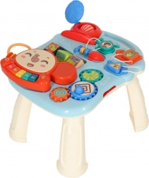 Tablica i stolik oferują interaktywne elementy, które wspierają rozwój zmysłów dziecka i ciekawość.