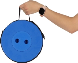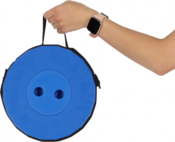 Zintegrowana rączka i regulowany pasek umożliwiają wygodne noszenie w dłoni i na ramieniu. Po złożeniu krzesełko ma płaski, poręczny kształt.