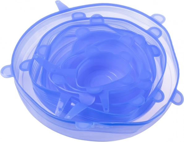 Silikonowe pokrywki do żywności (uniwersalne) 6 szt. - niebieskie