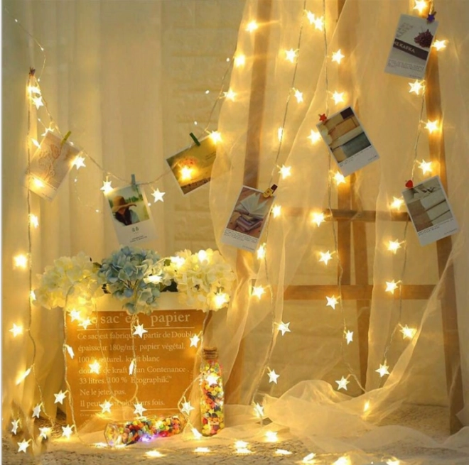 LED dekoracyjne lampki w kształcie gwiazdy 5 m – 50 światełek
