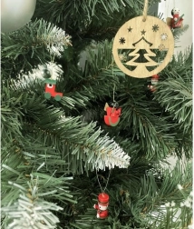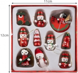 Zestaw zawiera 10 różnych drewnianych ozdób świątecznych, w tym gwiazdy, Świętego Mikołaja, dzwonki i inne zimowe motywy. Przynoszą radość i elegancję każdej choince.