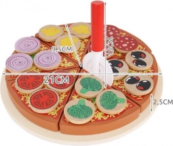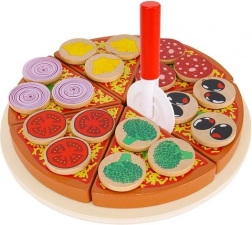 Drewniana pizza na rzepy to kreatywna zabawka, która pozwala małym dzieciom przygotowywać pizzę z różnorodnymi składnikami. W opakowaniu znajduje się 27 elementów, w tym podstawa, 6 kawałków pizzy, łopatka, nóż i 18 różnych warzywnych dodatków. Dzięki wysokiej jakości drewnu i bezpiecznym farbom, zabawka jest nie tylko zabawna, ale i bezpieczna. Zawarte są naklejki, które pozwalają dodawać składniki i „kroić” pizzę, co rozwija umiejętności koordynacji i logicznego myślenia.