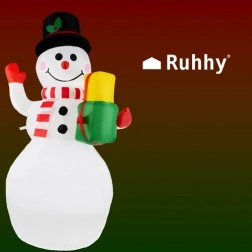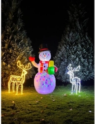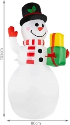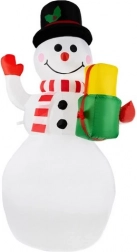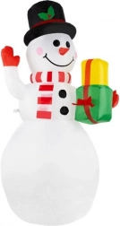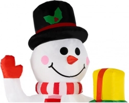 Nadmuchiwana figurka bałwana z wbudowanym projektorem LED doskonale nadaje się jako dekoracja do użytku na zewnątrz i wewnątrz. Wyposażony w czarny kapelusz, czerwony nos i trzymający prezenty. Dzięki zastosowaniu wodoodpornych i trwałych materiałów, gwarantuje długowieczność oraz wspaniały wygląd przez lata. Dodatkowo bałwan ma wbudowany kompresor, który szybko nadmuchuje strukturę do idealnego kształtu.