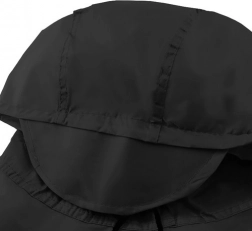 Regulowany kaptur ze sznurkami oraz praktyczny daszek chronią twarz i zwiększają komfort podczas jazdy na rowerze lub spaceru w deszczu.