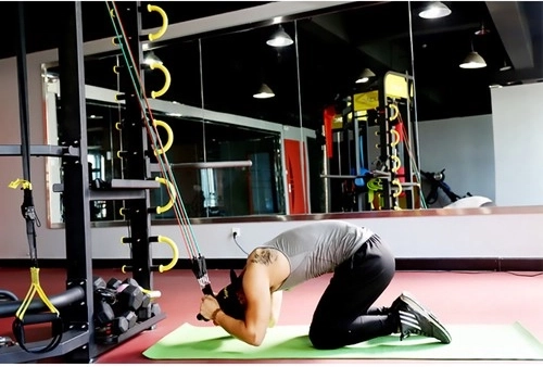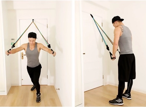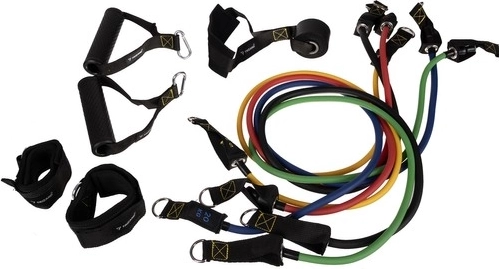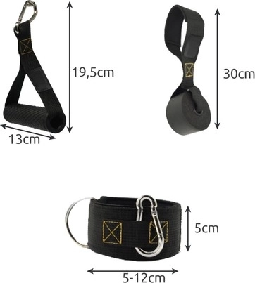 Kotwa drzwiowa, uchwyty i paski na kostki poszerzają możliwości treningu. W zestawie znajduje się praktyczny woreczek do łatwego przenoszenia.