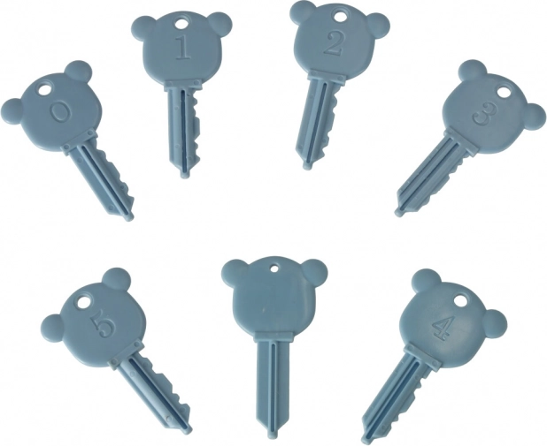 Każdy pojazd ma wyrazisty kolor i liczbę kółek dla łatwego dopasowania do ponumerowanych kluczyków. Dzieci w naturalny sposób przyswajają kolory, liczenie i sortowanie.