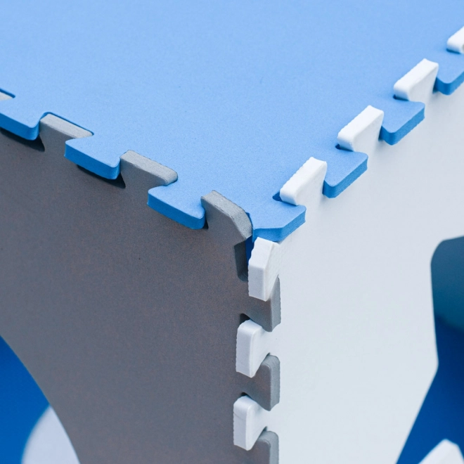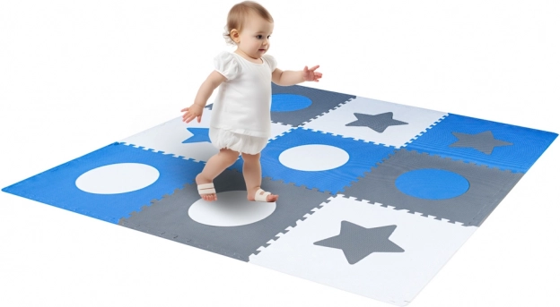 Ta szaro‑niebiesko‑biała edukacyjna mata piankowa z 9 wielkoformatowych elementów zamieni każdy pokój w bezpieczne i komfortowe miejsce do zabawy. Części łączą się jak puzzle, tworząc dużą powierzchnię do raczkowania, pierwszych kroków i spokojnej zabawy.