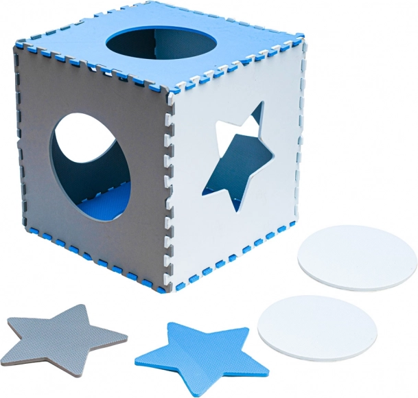 Gwiazdki i kółka można wyjmować i ponownie wkładać. Dziecko ćwiczy małą motorykę, koordynację oraz rozpoznawanie kształtów.