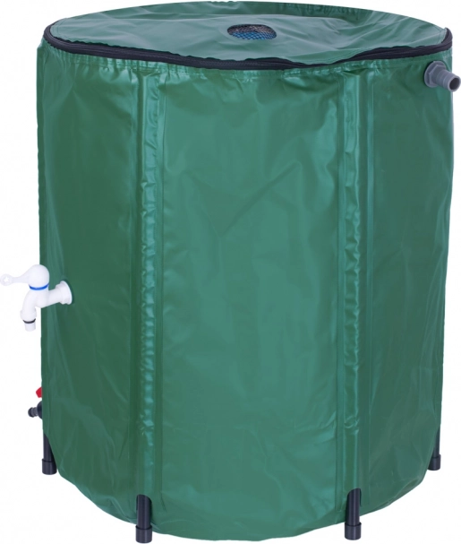 Wykorzystuj darmową deszczówkę do podlewania ogrodu, trawnika lub mycia powierzchni zewnętrznych, zmniejszając zużycie wody pitnej z sieci. Składany zbiornik o pojemności 500 l wykonany jest z wysokiej jakości PVC odpornego na promieniowanie UV i zużycie. Górna pokrywa z podwójnym zamkiem i drobna siatka przepuszczają wyłącznie wodę, zatrzymując liście i zanieczyszczenia.