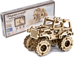 Spraw sobie radość ze składania drewnianych 3D puzzli Monster Truck Superfast. Dzięki precyzyjnym laserowym wycięciom elementy idealnie do siebie pasują, a Ty otrzymasz stylowy model z funkcjonalnym ruchem kół – idealny do ekspozycji i krótkich przejazdów po biurku.