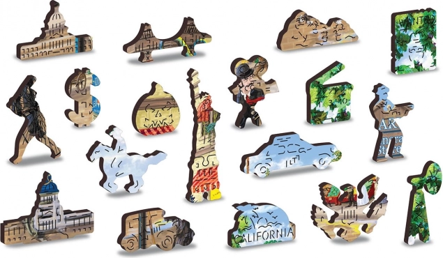 Specjalnie wycięte elementy w kształcie zwierząt, budowli i przedmiotów urozmaicają układanie, a niektóre z nich mogą służyć jako samodzielne figurki.
