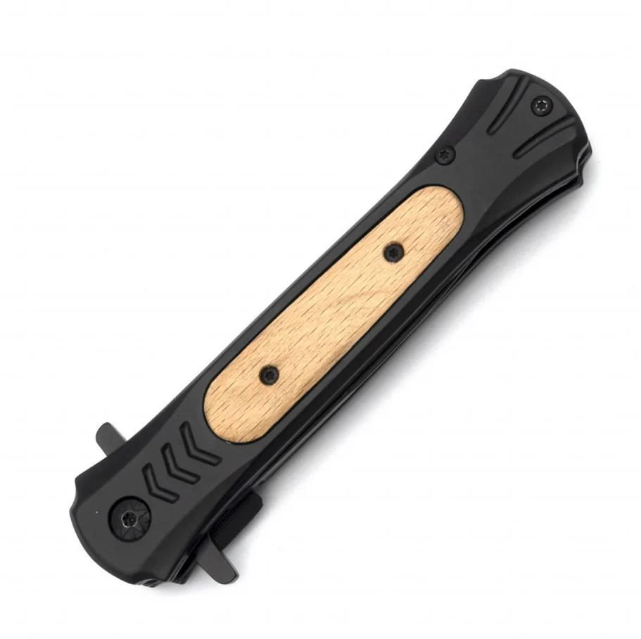 Uniwersalny składany nóż FOXTER łączy wytrzymałość, funkcjonalność i styl. Ostrze z wysokiej jakości stali nierdzewnej poradzi sobie z codziennymi zadaniami w terenie i w mieście, a połączenie metalu i drewna na rękojeści zapewnia pewny chwyt i atrakcyjny wygląd. Dzięki klipsowi łatwo przypniesz go do paska, kieszeni lub ekwipunku taktycznego.