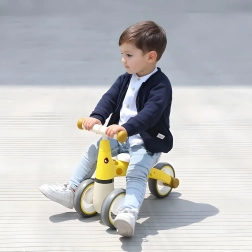 Podwójne przednie koła, ograniczenie kąta skrętu oraz nisko położony środek ciężkości pomagają zapobiegać wywrotkom. Dzieci trenują równowagę pewnie i w komforcie.