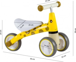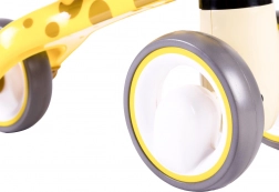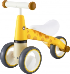 Pierwsze kroki w świecie jazdy będą z jeździkiem żyrafa łatwe i bezpieczne. Cztery stabilne kółka, blokada kąta skrętu kierownicy oraz niska waga około 2 kg dają małym kierowcom pewność, a rodzicom spokój. Jeździk wykonano z mocnego plastiku i uzupełniono miękkimi piankowymi elementami dla wygody i bezpiecznego chwytu.